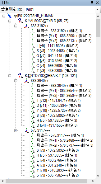 此文件包含单次 DDA 运行的肽段谱图匹配结果。在真正的实验中,您其实会在质谱仪上执行 DDA 采集,然后通过搜索引擎运行输出文件,以生成一个或多个这样的文件(对于 TPP 生成的 pepXML,通常生成一个文件)。在此会为您提供这些文件。请注意,原始 DDA 运行数据文件(已转换为 mzXML),即 interact-20130311_DDA_Pit01.mzXML,也位于同一文件夹中。虽然无需为色谱图提取而导入该文件,但其必须位于此处,建库器才能查找 .pep.xml 文件中所没有的库串联质谱谱图。Mascot DAT 文件、Proteome Discoverer pdResult 文件以及 X! Tandem 原生 XML 文件等其它谱图匹配管道输出则是在单独一个输出文件中包含需要的一切信息。您可以在 Skyline 网站上找到支持的工具和文件格式的完整列表。