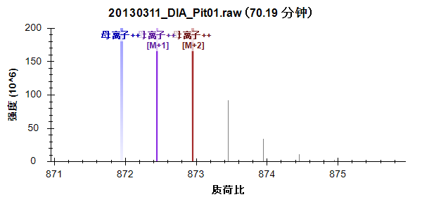 这个肽段有两个母离子,871.9467 处有双电荷,581.6335 处有三电荷。